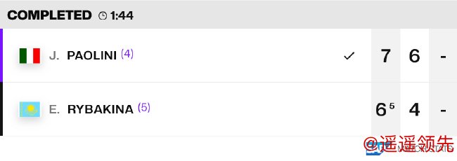 - 如果萨巴伦卡两盘胜出,莱巴金娜三盘取胜,那么萨巴伦卡确认出线(名次待定)