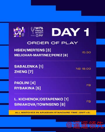 相关阅读:WTA总决赛郑钦文0-2萨巴伦卡 谢淑薇组合遭逆转